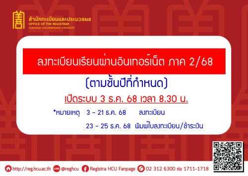 ทุกชั้นปี ลงทะเบียน ภาค 1/68 ผ่านอินเทอร์เน็ต